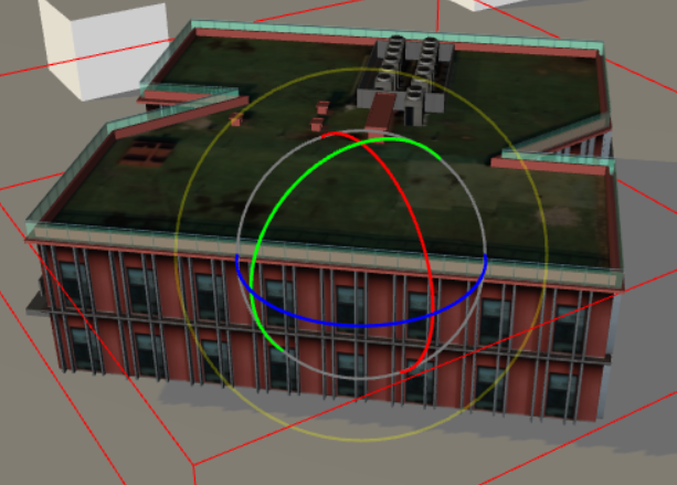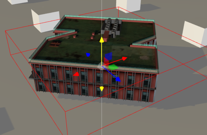 模型拖入场景中后,还可以在场景中二次编辑模型的位置,大小和其他属性。 可以通过属性框设置属性,也可以通过gizmo工具进行平移,旋转和缩放模型。如下图所示: