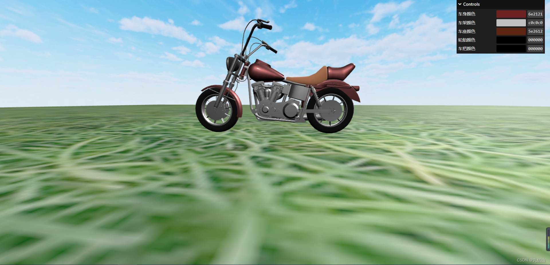 this.scene.background = textureCube刷新浏览器看下效果,可以看到天空已经出现在了场景中