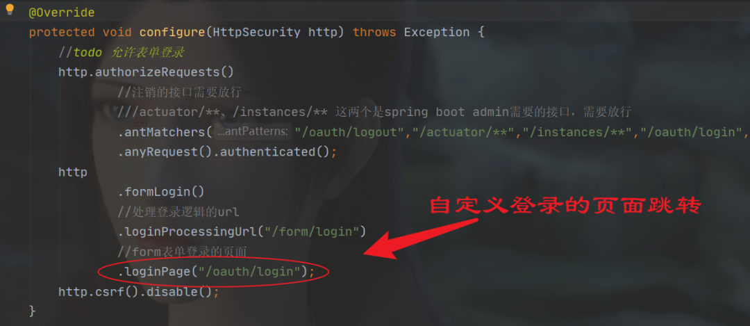 需要在OAuth2的授权服务中定义一个接口跳转到定制的页面,接口如下:
