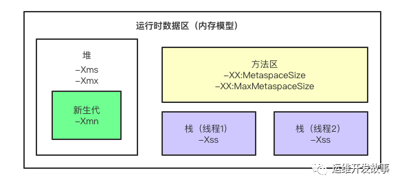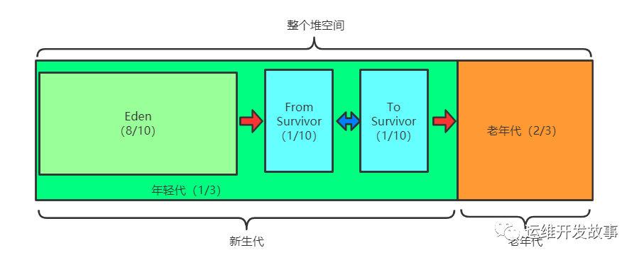 在 JDK 1.8 及其以后,堆空间中移除了永久代。为什么删除永久代的缘由可以阅读以下文档:http://openjdk.java.net/jeps/122。其核心原因主要有以下几点:这是 Hotspot 和 JRockit 虚拟机融合。JRockit 客户不需要配置永久代(因为JRockit 没有永久代),习惯不配置永久代。增加元空间解决类加载所需要的内存空间,而且元空间默认是自动拓容的。这样减少内存溢出的可能。堆空间移除永久代过后,堆空间的结构如下图所示: