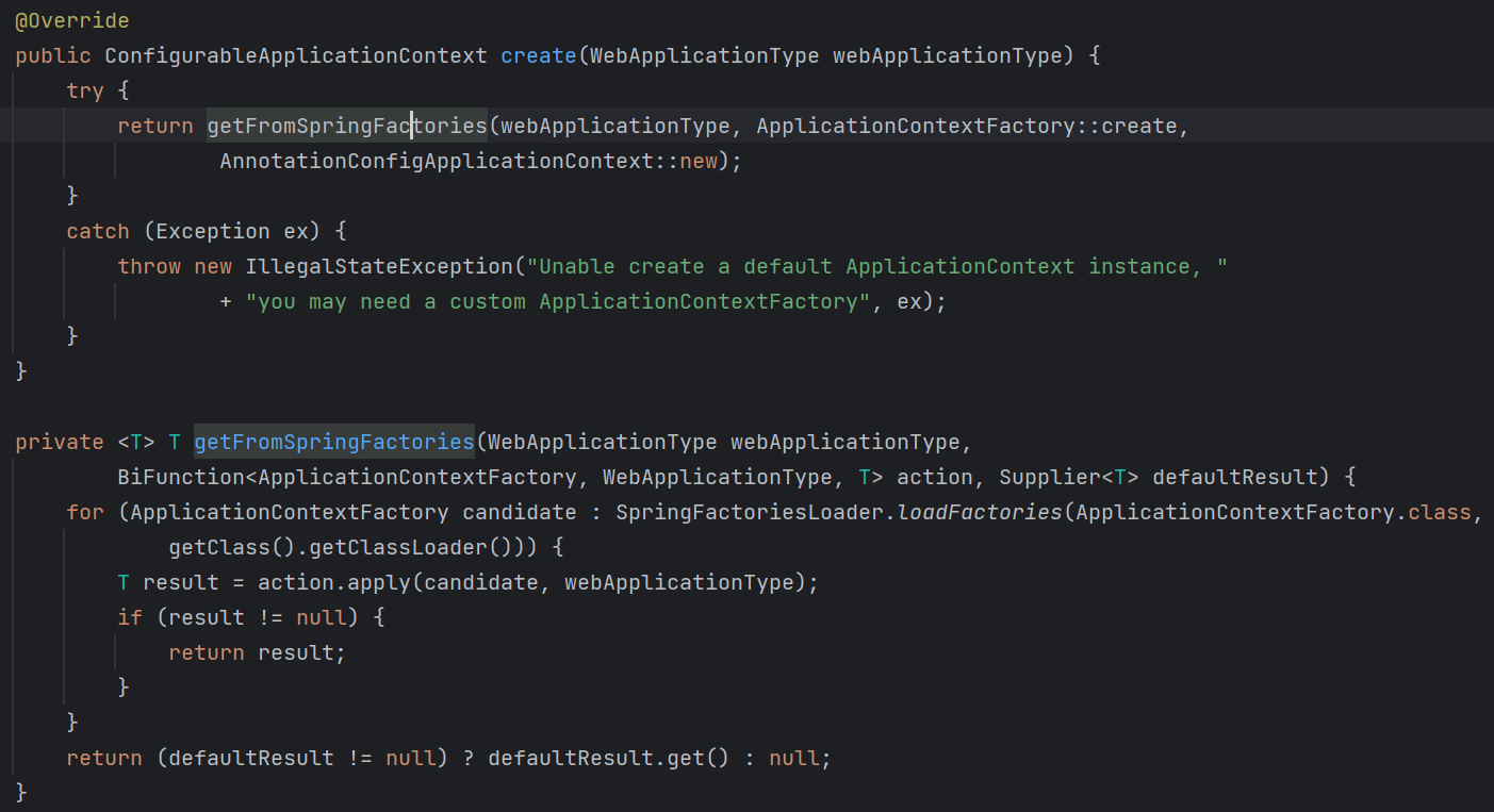 createApplicationContext();会调用DefaultApplicationContextFactory.create(WebApplicationType webApplicationType)