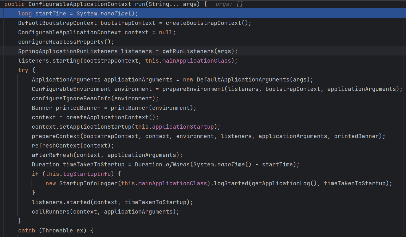 我们追溯SpringApplication.run方法的源码,会看到如下run方法,这个方法就是比较核心的启动流程了。