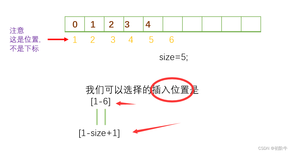 尾插: 之所以是size+1,是因为位置是坐标+1
