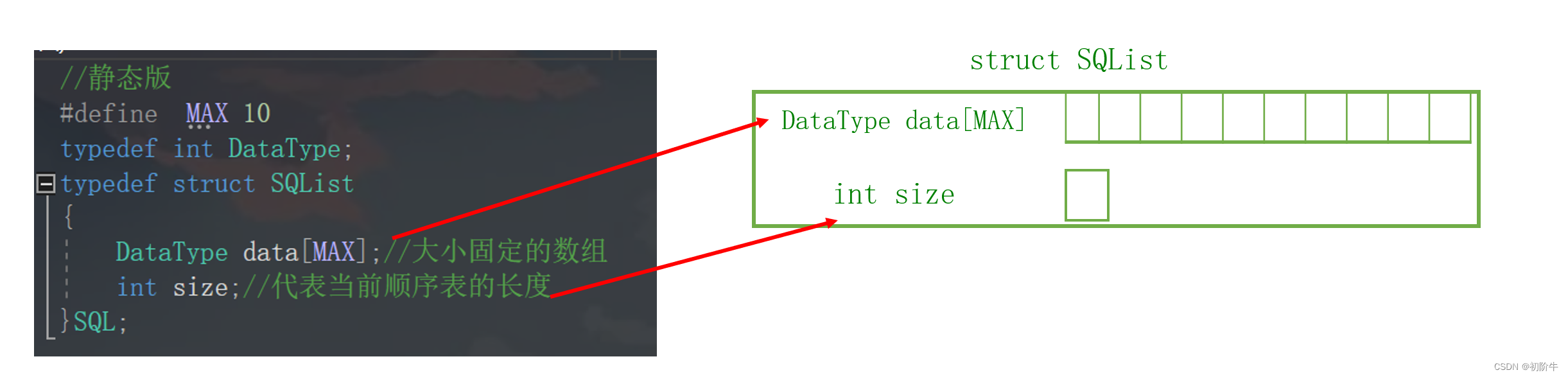 静态顺表是指顺序表的容量是固定的,如果看过c语言实现通讯录的友友们,对于静态顺序表可以轻松拿捏.