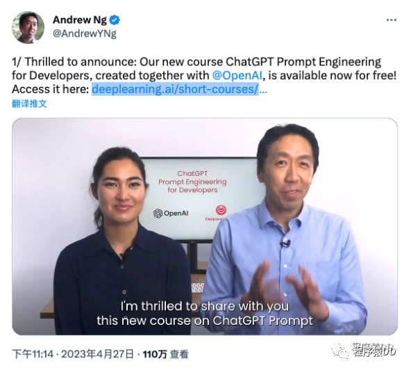 就在几小时之前,吴恩达在Twitter上宣布了与OpenAI合作的最新免费教程:《ChatGPT Prompt Engineering for Developers》