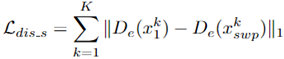 ,它由来自x2的骨骼隐编码和来自x1的形状隐编码解码得到,如图4 (b) 所示,Ldis_b和Ldis_s分别用于保留属于x2的骨骼信息和属于x1的几何特征。