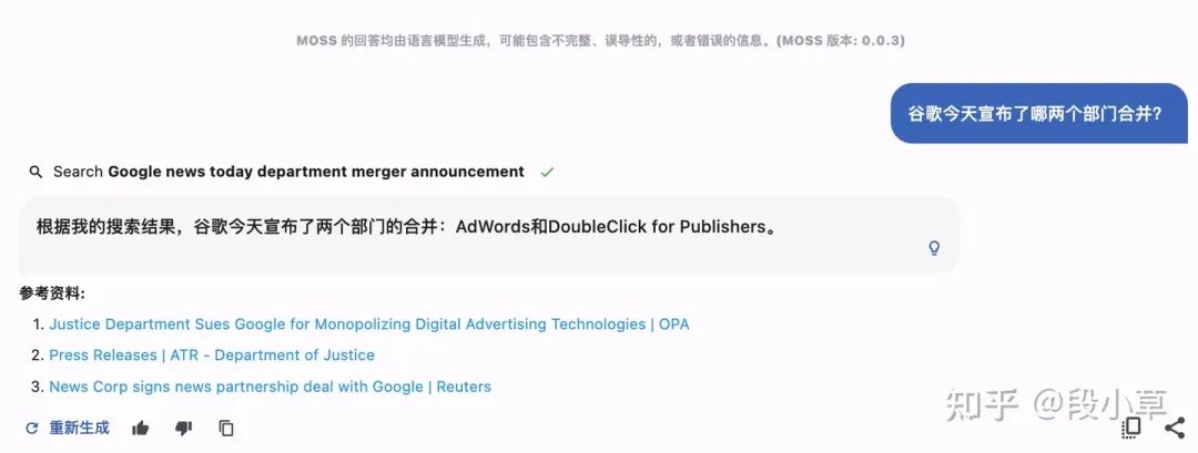 使用联网插件时,第一次虽然不成功,但在重新尝试之后, MOSS给出了正确的答案。
