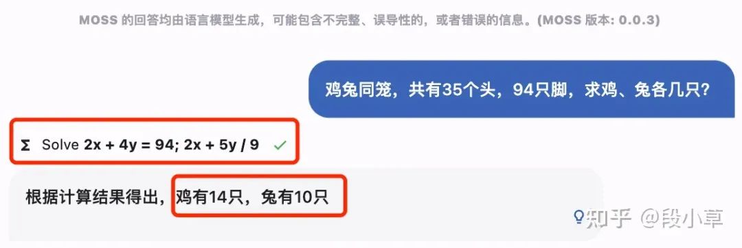但有时也会回答错误,比如下面这个例子,MOSS就把列方程和求解都做错了。