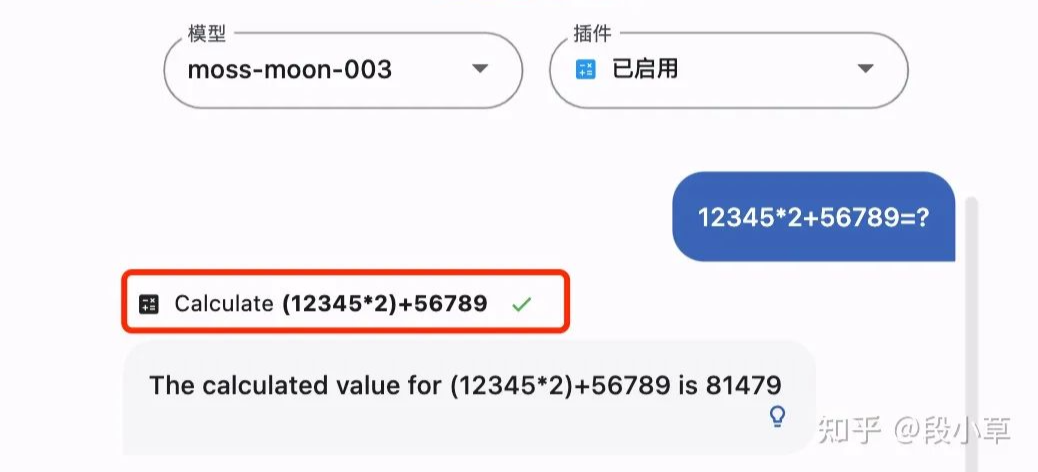 在触发插件时,MOSS可以作答正确,表现还是很优异的。