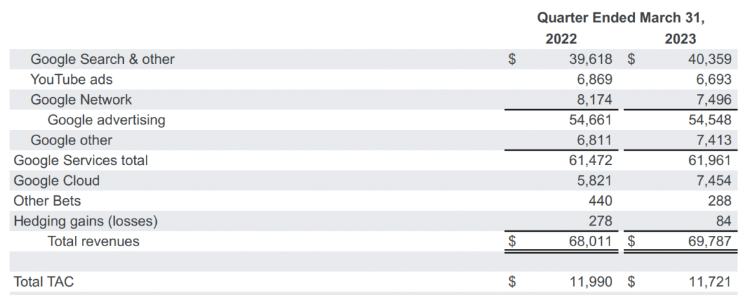 同在一天,谷歌也公布了2023财年第一季度财报。