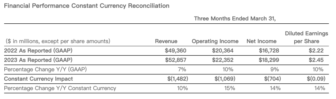 本季度营收为529亿美元,同比增长7%;净利润为183亿美元,同比增长9%;每股收益为2.45美元,同比增长10%。