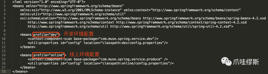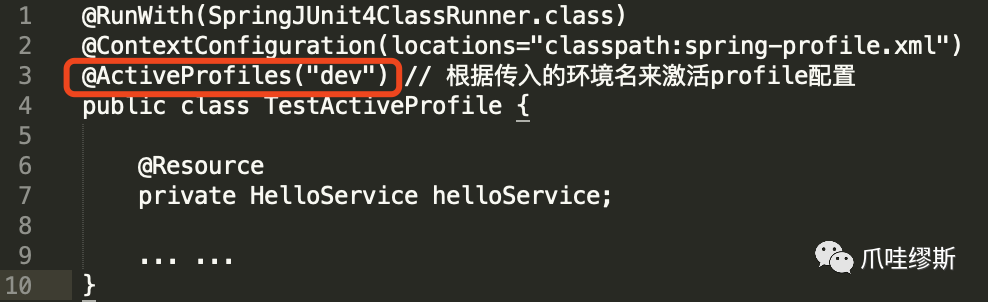 等环境有各自的配置文件,我们就可以通过设置profile来在特定的环境下读取对应的配置文件。使用方式如下所示: