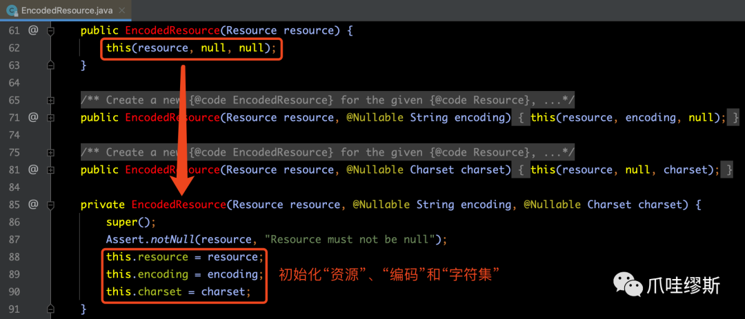 类包装了一层。在构造EncodedResource实例的时候,我们可以指定resource