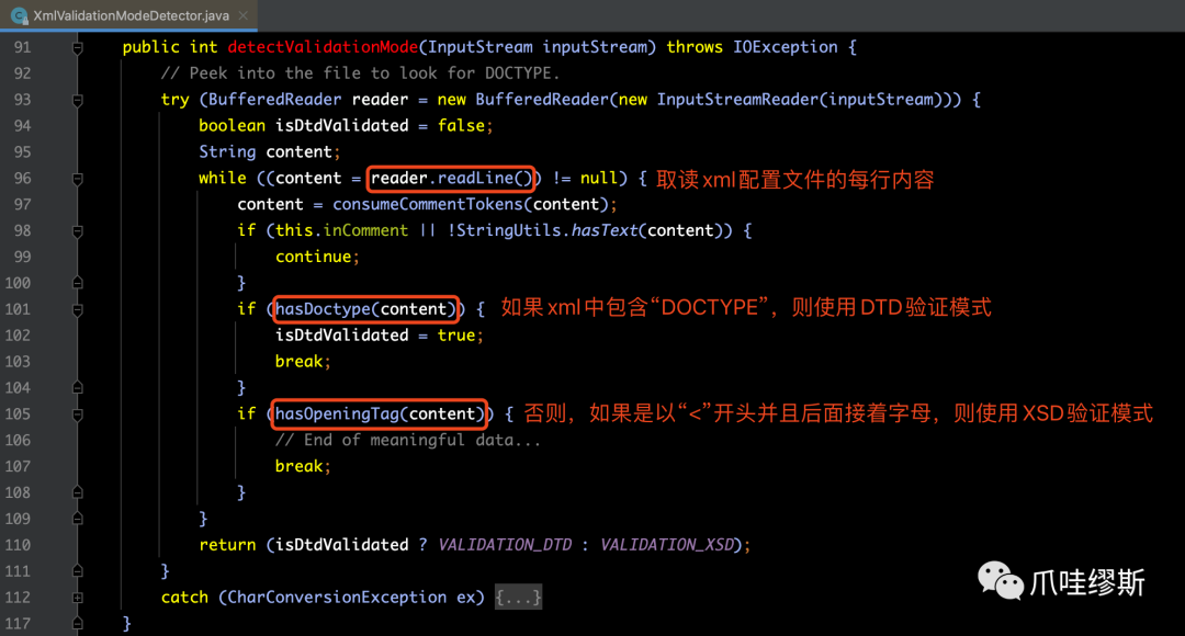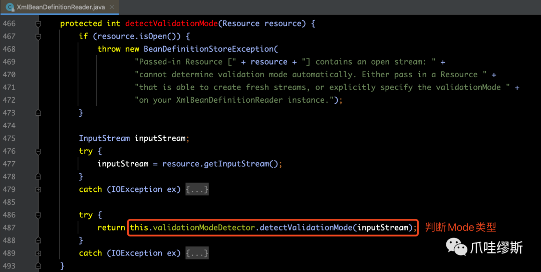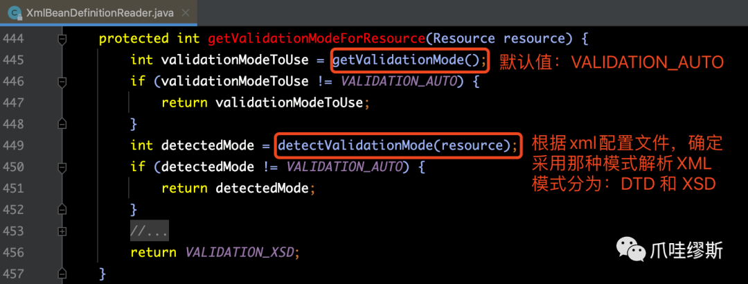 方法根据xml配置文件的格式,来确定Mode是DTD还是XSD。