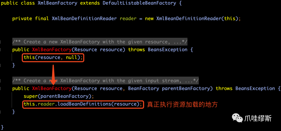 将Spring相关的配置文件封装为Resource类型实例之后,我们就可以继续创建XMLBeanFactory实例对象。如下是其构造函数源码:
