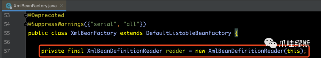 集成自DefaultListableBeanFactory,不同的地方是在XmlBeanFactory中使用了自定义的XML读取器XmlBeanDefinitionReader