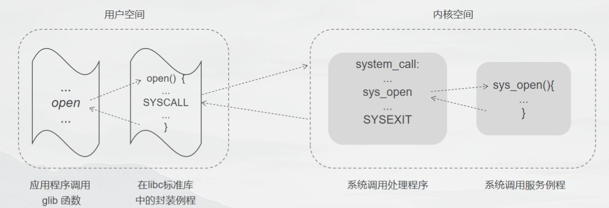 系统调用可被看成是一个内核与用户空间程序交互的接口——它好比一个信使,把用户进程的请求传达给内核,待内核把请求处理完毕后再将处理结果送回给用户空间。