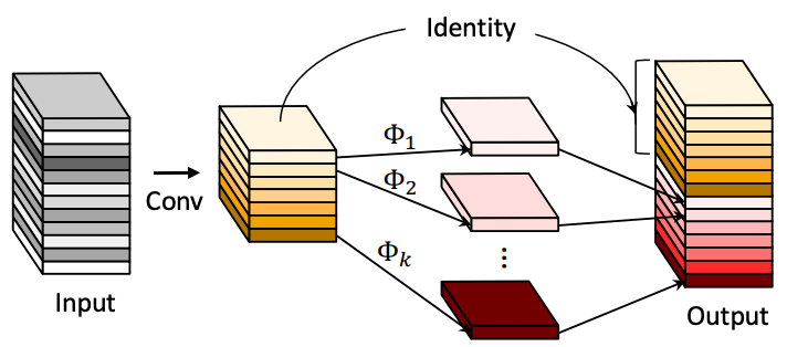 传统卷积、G-Ghost模块和G-Ghost with mix模块