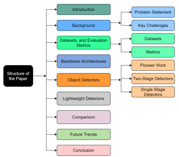 目标检测是指在图像或视频中分类和定位物体的任务。由于其广泛的应用,最近几年目标检测受到了越来越多的关注。本文概述了基于深度学习的目标检测器的最新发展。同时,还提供了目标检测任务的基准数据集和评估指标的简要概述,以及在识别任务中使用的一些高性能基础架构,其还涵盖了当前在边缘设备上使用的轻量级模型。在文章的最后,我们通过以图表的形式直观地在多个经典指标上比较了这些架构的性能。