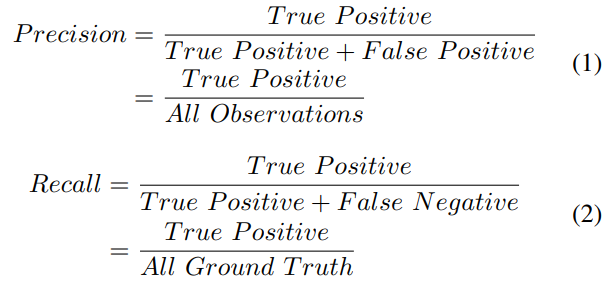 目标检测任务常用多个标准来衡量检测算法的性能,如每秒帧数(FPS)、精度和召回率。但是,平均精度(mAP)是最常见的评估指标。精度是由交叉率(IoU)推导出来的,它是GT和预测边界框之间的重叠区域与联合区域的比率。此外,可以通过设定阈值来确定检测是否正确,如果IoU大于阈值,则将其分类为真阳性(True Positive),而IoU低于阈值时分类为假阳性(False Positive)。如果模型未能检测到GT中存在的目标,则称其为假阴性(False Negative)。