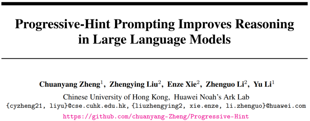 近期,华为联和港中文发表论文《Progressive-Hint Prompting Improves Reasoning in Large Language Models》,提出 Progressive-Hint Prompting (PHP),用来模拟人类做题过程。在 PHP 框架下,Large Language Model (LLM) 能够利用前几次生成的推理答案作为之后推理的提示,逐步靠近最终的正确答案。要使用 PHP,只需要满足两个要求: 1) 问题能够和推理答案进行合并,形成新的问题;2) 模型可以处理这个新的问题,给出新的推理答案。