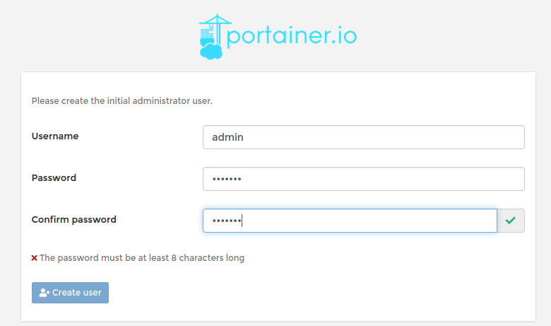 $ docker run --name portainer --restart always -d -p 8000:8000 -p 9000:9000 -v /var/run/docker.sock:/var/run/docker.sock -v portainer_data:/data portainer/portainer然后在浏览器打开对应地址,就会发现成功运行了。第一次运行的时候需要设置账号,然后选择要管理的Docker主机。