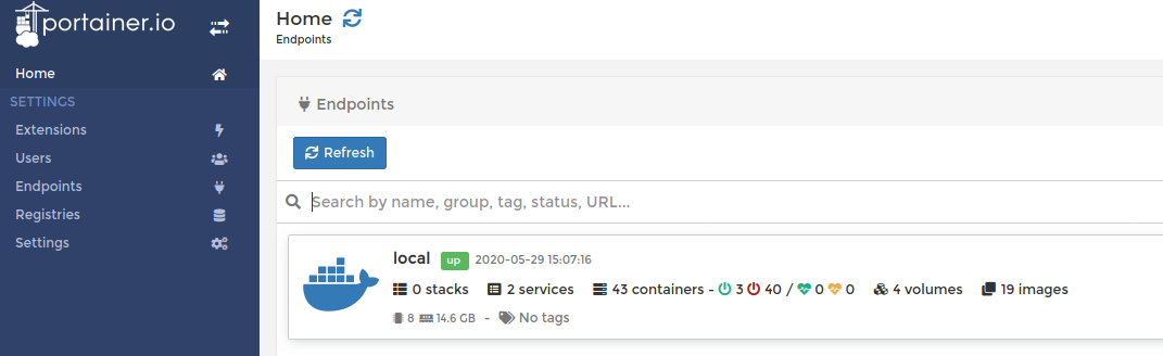 UI For Docker是一个使用Docker Remote API的web接口,目的是提供一个简洁纯净的客户端实现,为了连接和管理Docker; 该工具目前已经无人维护,建议使用下面介绍的portainer