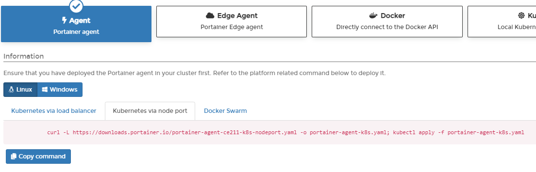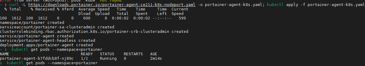 curl -L https://downloads.portainer.io/portainer-agent-ce211-k8s-nodeport.yaml -o portainer-agent-k8s.yaml; kubectl apply -f portainer-agent-k8s.yaml