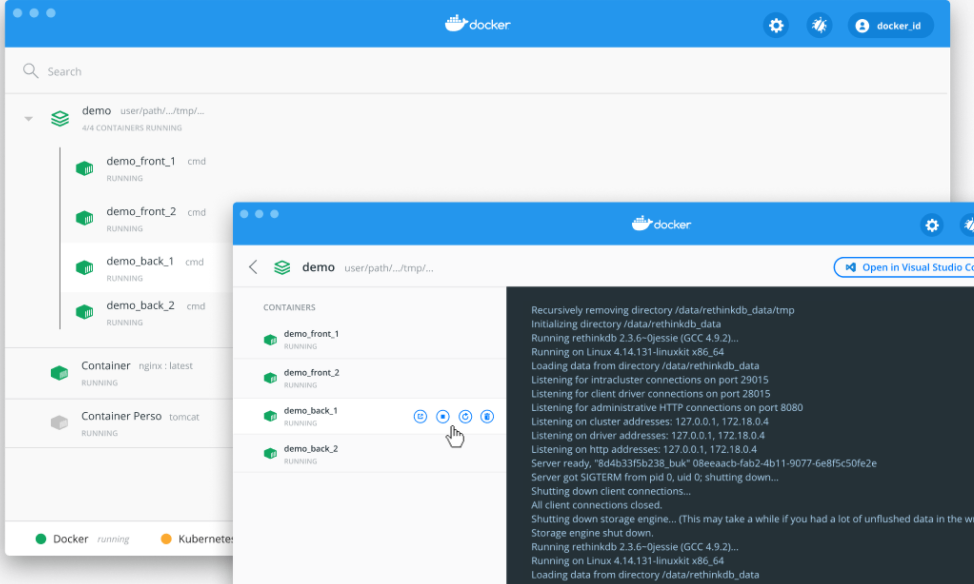 之后就可以看到本机上运行的Docker容器了,点击它们还可以进行容器的管理。
