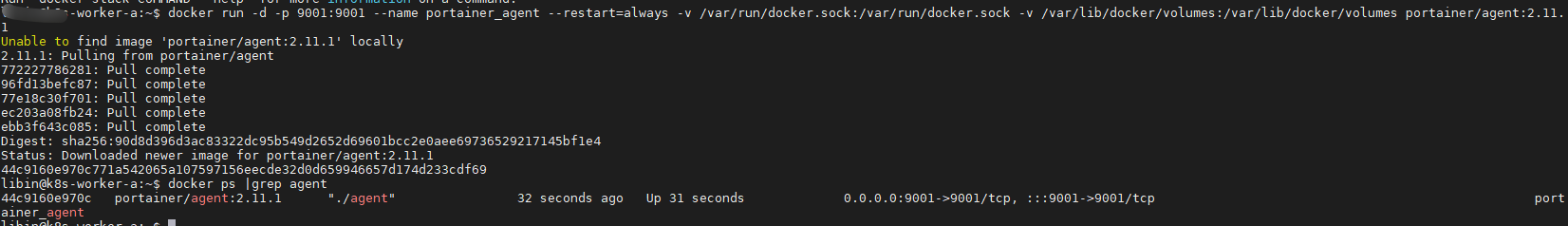 docker run -d -p 9001:9001 --name portainer_agent --restart=always -v /var/run/docker.sock:/var/run/docker.sock -v /var/lib/docker/volumes:/var/lib/docker/volumes portainer/agent:2.11.1