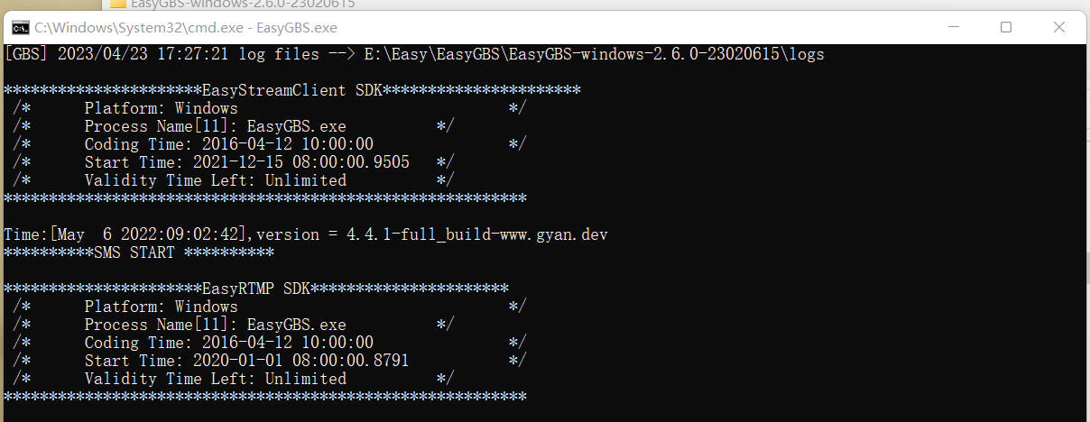 2)使用EasyGBS.exe进行启动,查看是否有信息打印出来;