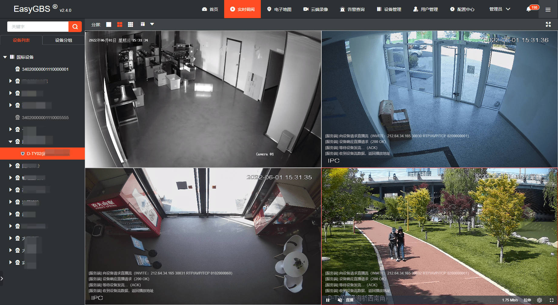 EasyGBS国标视频云服务是基于国标GB/T28181协议的视频能力平台,可实现的视频功能包括:实时监控直播、录像、检索与回看、语音对讲、云存储、告警、平台级联等功能。平台部署简单、可拓展性强,支持将接入的视频流进行全终端、全平台分发,分发的视频流包括RTSP、RTMP、FLV、HLS、WebRTC等格式。