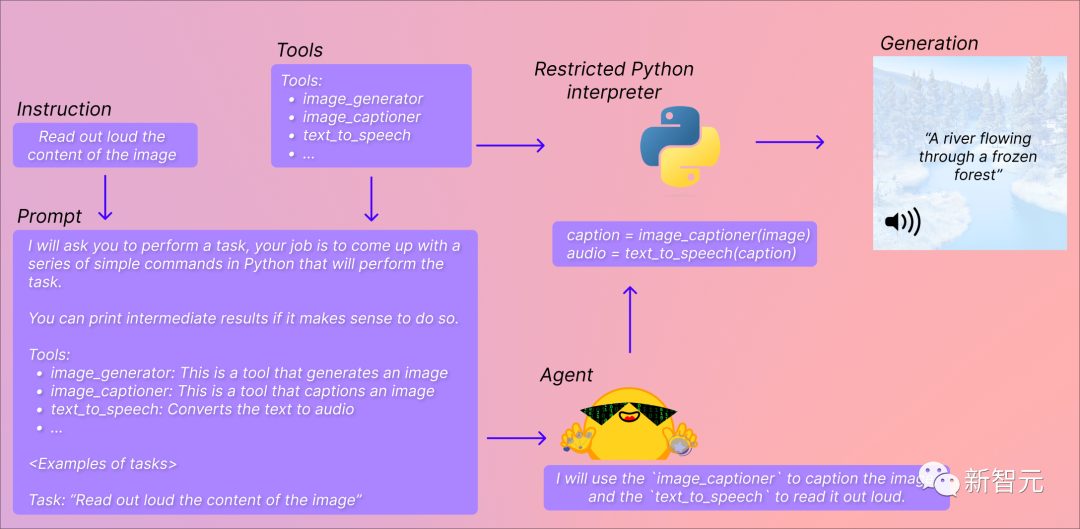 它自动选择适合你要执行的任务的工具(或工具)并适当地运行它们。它可以在同一指令中执行一个或几个任务(你的指令越复杂,就越有可能失败)。