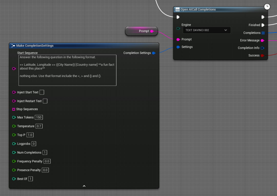 虚拟引擎中的蓝图非常灵活,可以无缝接入ChatGPT的API,用户可以输入prompt来获得动态的输出结果。