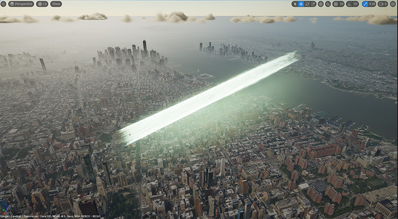 小哥用了Cesium平台和接入的虚拟引擎,把XY坐标信息扔到谷歌地图API里去获取地理位置数据。然后再用这个地理位置数据去获取3D视图。