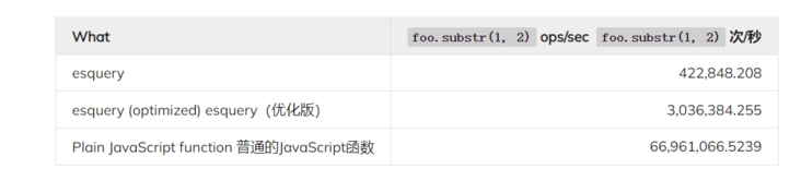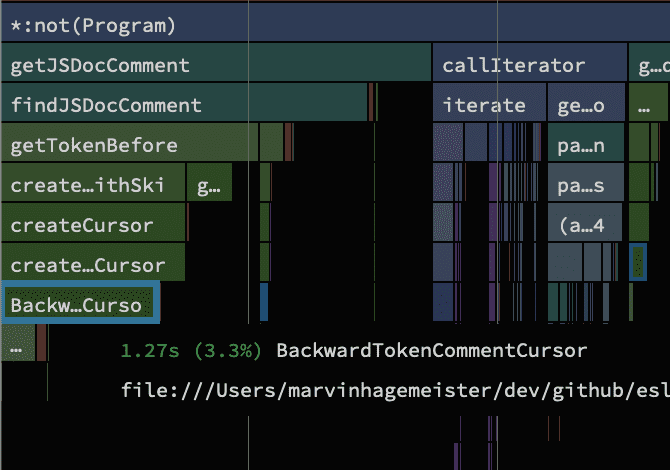 他甚至更进一步,通过将每个新选择器解析为一系列函数调用链,并在运行时缓存生成的包装函数。这个技巧为选择器引擎带来了另一个巨大的加速。我强烈建议查看他的更改。我们还没有发起PR,因为 esquery 似乎在这一点上没有维护。