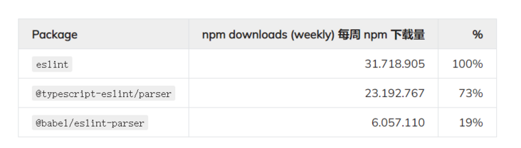 设置中看到的相同问题是否也会在其他linting设置中出现? eslint的关键优势之一一直是其灵活性和对第三方linting规则的支持。回想一下,我所工作的每个项目几乎都有几个自定义linting规则和大约2-5个额外的eslint插件或预设。但更重要的是,它们完全切换了解析器。快速查看npm下载统计数据突显了替换eslint内置解析器的趋势。