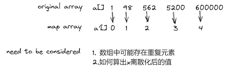 的数组过于浪费空间,因此我们可以采用离散化的方法,将这些数映射到