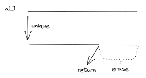 vector<int>::iterator unique(vector<int> &a)