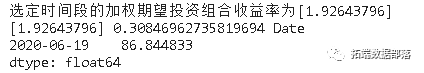 现在,我们将挑选出每个资产的最新HPR,并使用.dot()函数将收益率与计算出的资产权重相乘。
