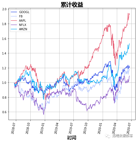 list(sharpe.values())现在,我们将把投资组合的股票价格转换为累计收益,这也可以被视为本项目的持有期收益(HPR)。