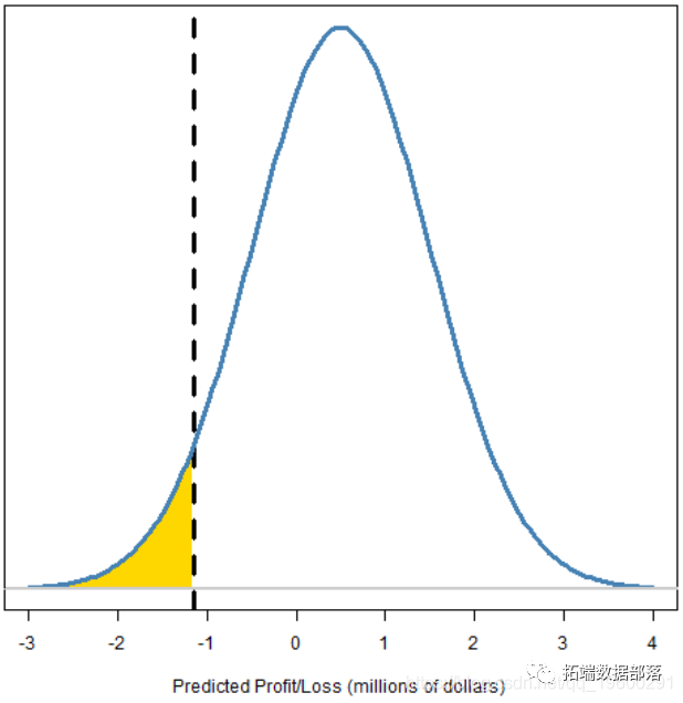 所得金额将标志着每天弥补你的损失所需的金额。这个结果也可以解释为你的投资组合在5%的概率下将面临的最低损失。