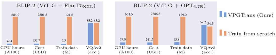 图 1:基于我们的 VPGTrans 方法的 BLIP-2 训练开销缩减对比