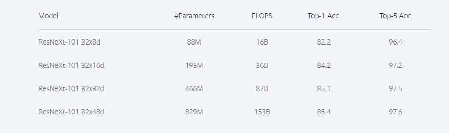 ResNeXt_WSL与ResNeXt是一样的结构,只是训练方式有所改变。下图是ResNeXt_WSL的训练效果。