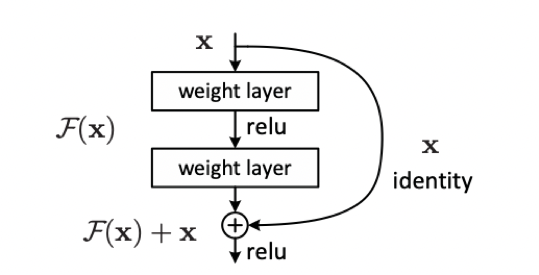 恒等映射即为 $H(x) = x$,已有的神经网络结构很难做到这一点,但是如果我们将网络设计成 $H(x) = F(x) + x$,即 $F(x) = H(x) - x$,那么只需要使残差函数 $F(x) = 0$,就构成了恒等映射 $H(x) = F(x)$。