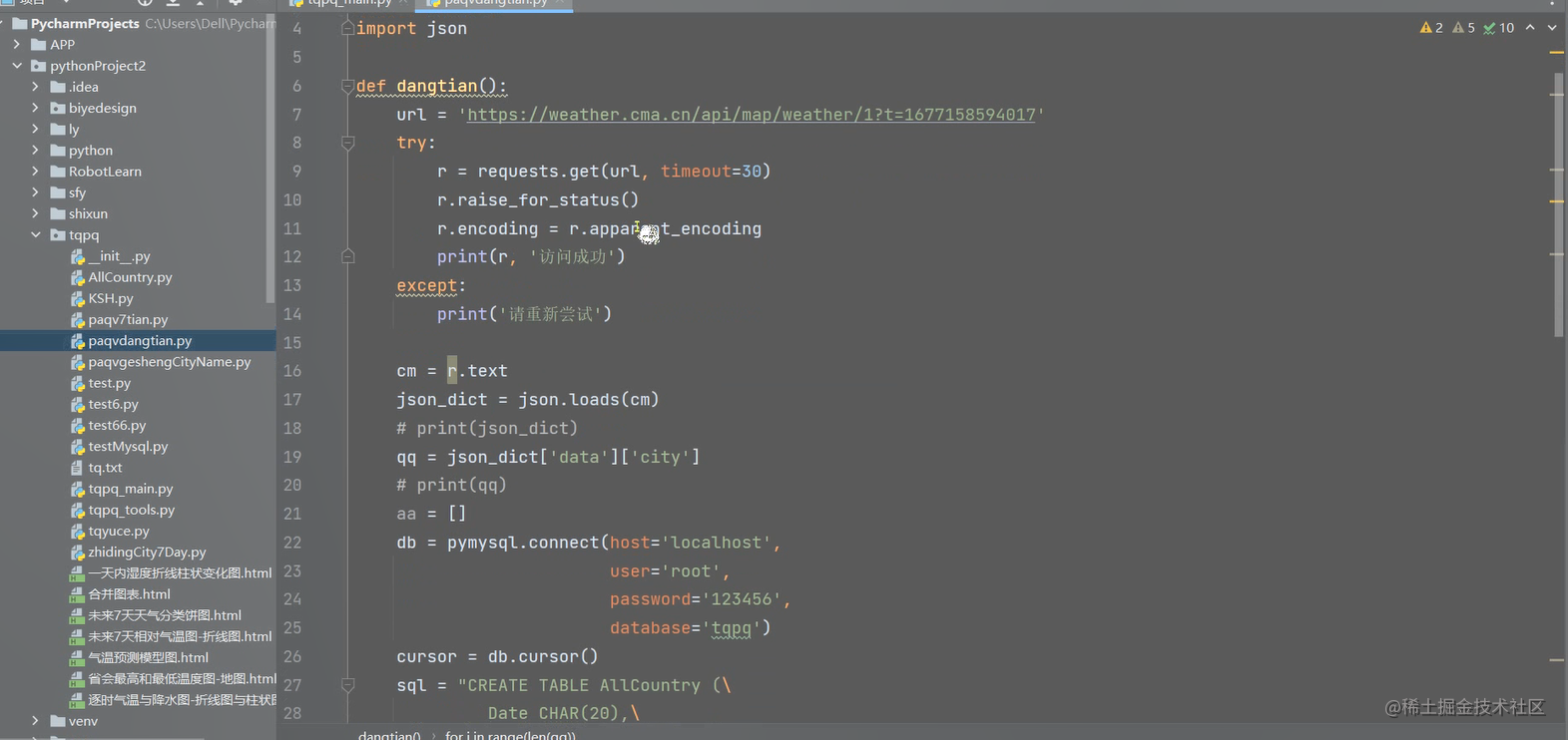 首先,我们需要从中国气象局天气预报网上获取天气数据。这一步需要使用爬虫技术,通过向网站发出请求并解析网页内容,获取所需数据。Python有专门的爬虫库,如Requests,可以帮助我们轻松实现这一步骤。