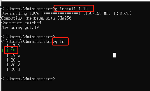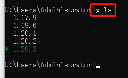 ## 如果已经下载了某个版本,比如1.20.3,如何切换呢?用g use 1.20.3 命令就行,输入以下命令: