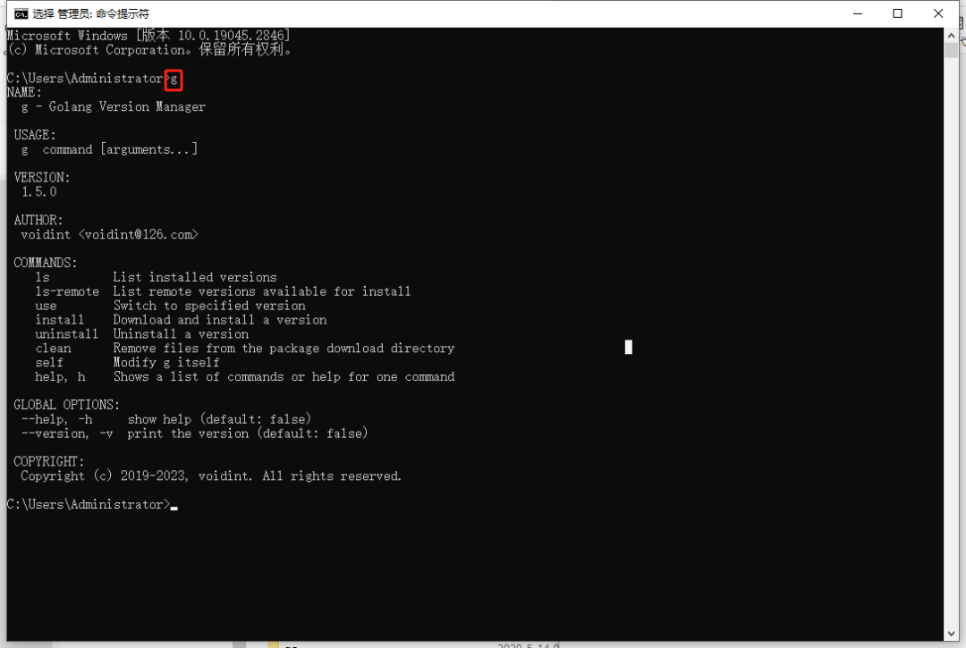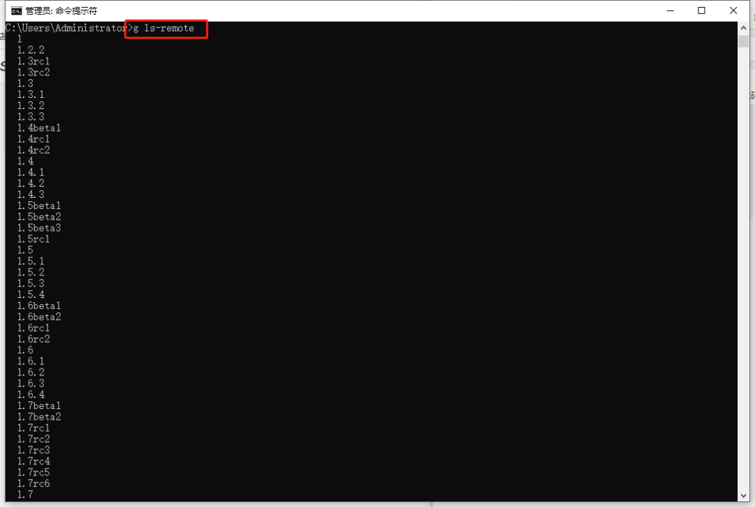 需要使用的命令是g ls,g ls-remote,g install,g use。其他命令,比如卸载,你们就自己研究吧。