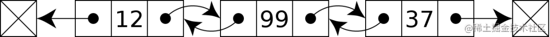 // create the first nodeconst head = new DoublyLinkedListNode(12);// add a second nodeconst secondNode = new DoublyLinkedListNode(99);head.next = secondNode;secondNode.previous = head;// add a third nodeconst thirdNode = new DoublyLinkedListNode(37);secondNode.next = thirdNode;thirdNode.previous = secondNode;const tail = thirdNode;