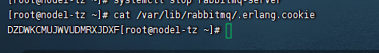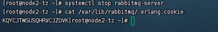 停掉节点的服务: Systemctl stop rabbitmq-server 查看node1的cookie的值 cat /var/lib/rabbitmq/.erlang.cookie
